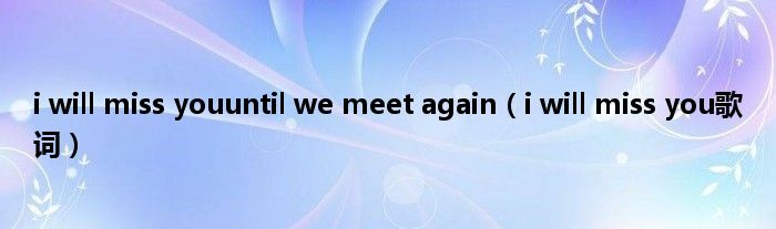 大家好,小问来为大家解答以上问题。i will miss youuntil we meet again,i will miss you歌词这个很多人还不知道,现在让我们一起来看看吧!