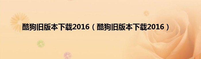大家好,小问来为大家解答以上问题。酷狗旧版本下载2016,酷狗旧版本下载2016这个很多人还不知道,现在让我们一起来看看吧!