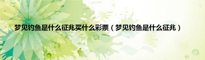大家好,小问来为大家解答以上问题。梦见钓鱼是什么征兆买什么彩票,梦见钓鱼是什么征兆这个很多人还不知道,现在让我们一起来看看吧!