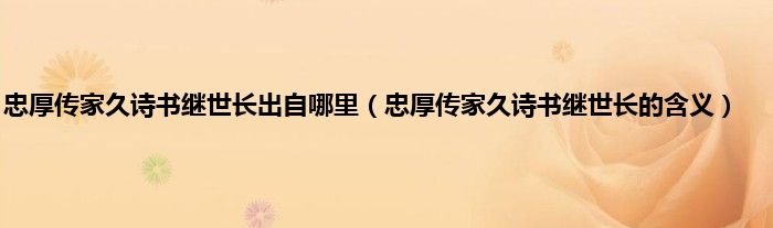 忠厚传家久诗书继世长出自哪里(忠厚传家久诗书继世长的含义)