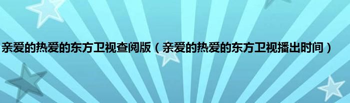 大家好,亲爱的热爱的东方卫视查阅版,亲爱的热爱的东方卫视播出时间很多人还不知道,现在让我们一起来看看吧!