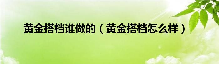 以上就是【黄金搭档谁做的,黄金搭档怎么样】相关内容。