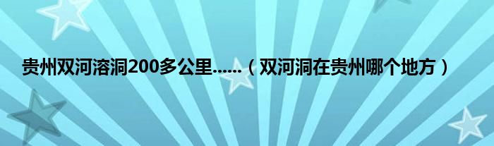 本文,贵州双河溶洞200多公里......,双河洞在贵州哪个地方到此就分享完毕,希望对大家有所帮助。