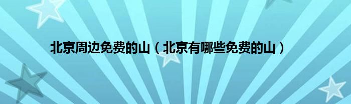 大家好,小问来为大家解答以上问题。北京周边免费的山,北京有哪些免费的山这个很多人还不知道,现在让我们一起来看看吧!
